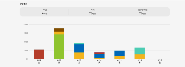 しかし、日ごとの推移を見ると、特定の日に学習が集中しており、継続的な積み上げになっていない状態です。